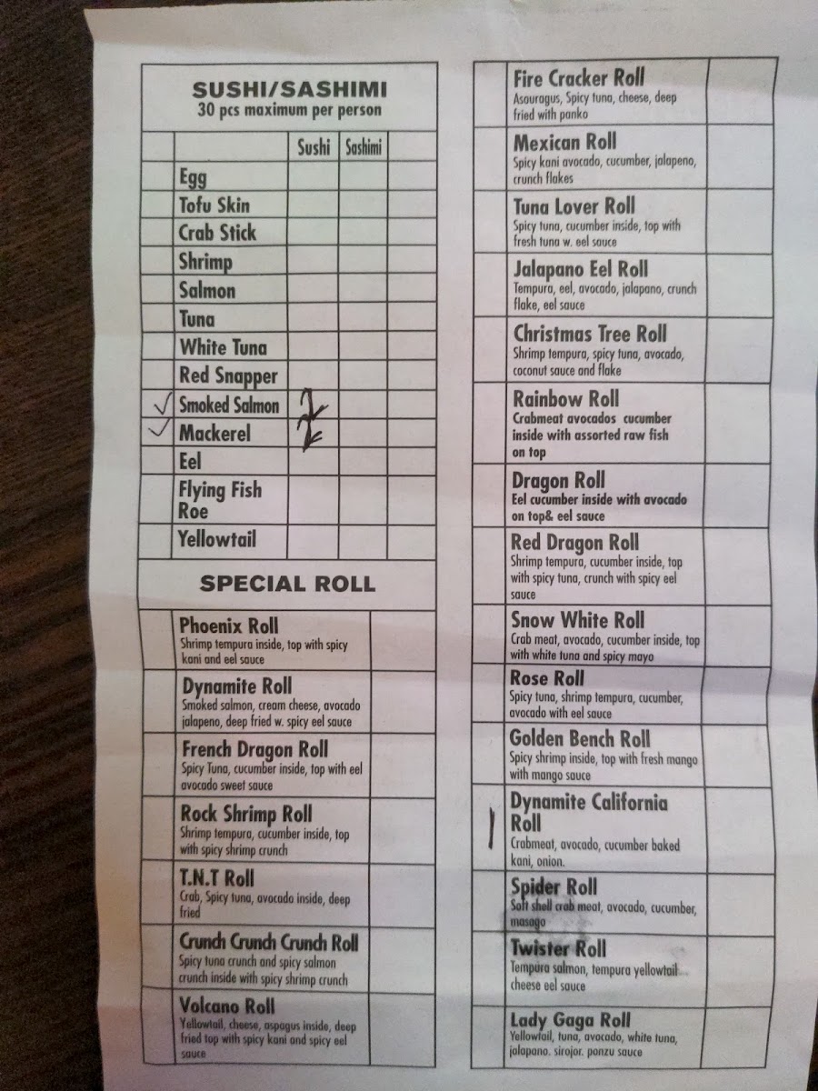 5 pieces assorted sushi, and California roll.