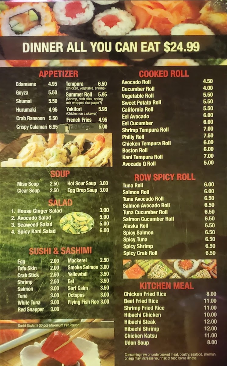 For a heartier meal, the Hibachi Entrées are a popular choice. The Hibachi Chicken, Hibachi Shrimp, and Hibachi Steak are served hot off the grill, delivering smoky flavors and tender meat. For those who want a bit more variety, the Steak and Shrimp and Chicken and Steak Hibachi combinations are great options. If you prefer to have your Hibachi meal during lunch, Hibachi Chicken, Sirloin Steak, and Hibachi Shrimp are available as part of the lunch menu.